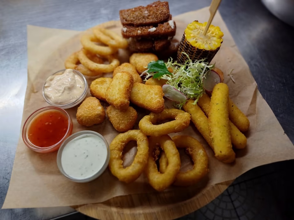“Alus plate” paredzēts divām personām. Garda un dažāda uzkoda, kas ideāli papildina jūsu alu. Sastāv no vairākām sastāvdaļām un salāti.