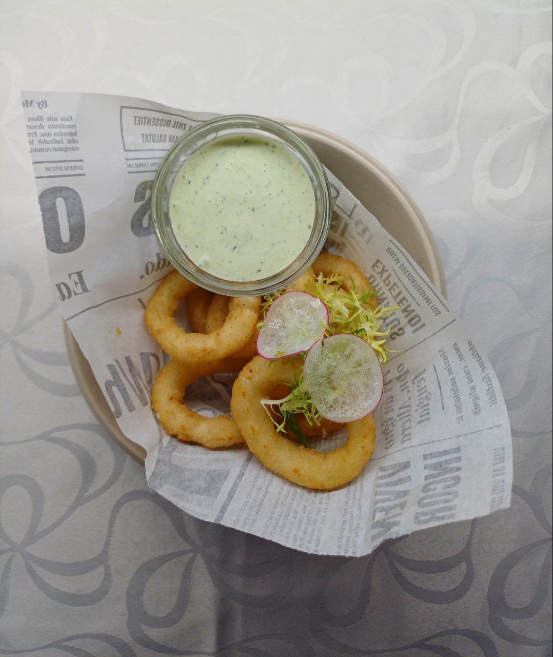 0 no 5(0)zbaudiet mūsu klasiskos, krāsnī ceptos kalmāru gredzenus, kas pasniegti ar mūsu speciālo mērci. Ideāla uzkoda vai salāti.